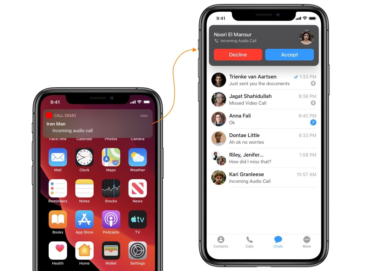 7. Launch call screen on tap of push notification