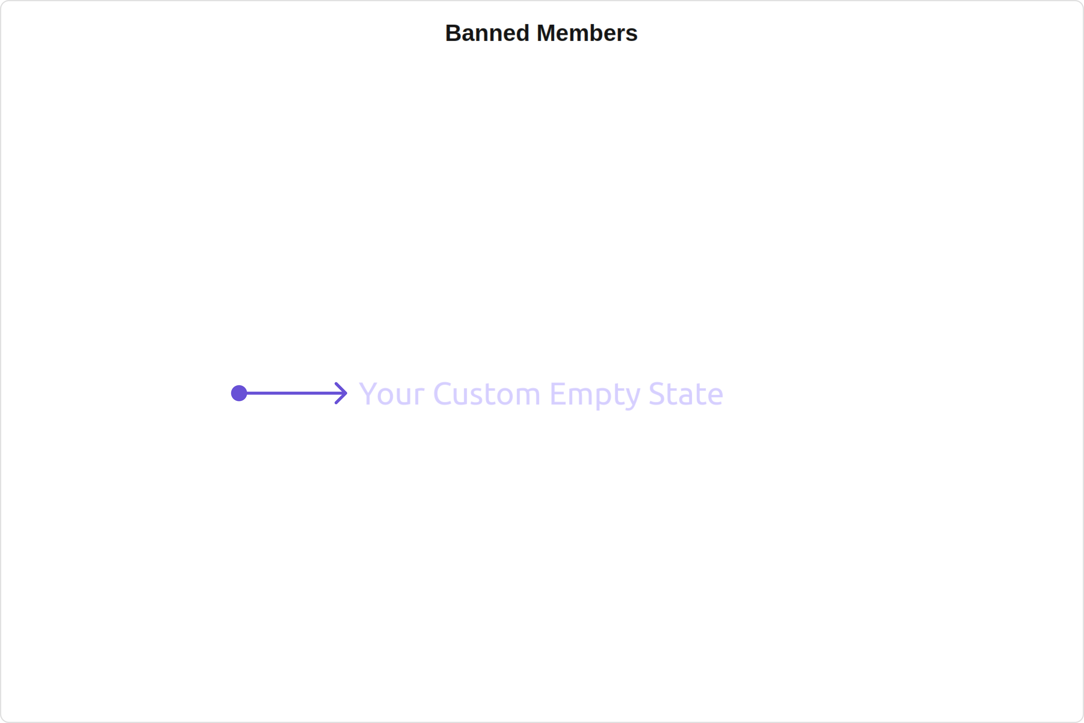 emptyStateText Used to set a custom text response when fetching the banned members has returned an empty list[emptyStateText]="'your custom empty state text'"