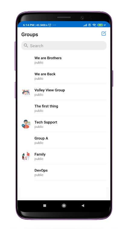 TheCometChatGroups is a custom RecyclerView that helps you to display a list of groups.